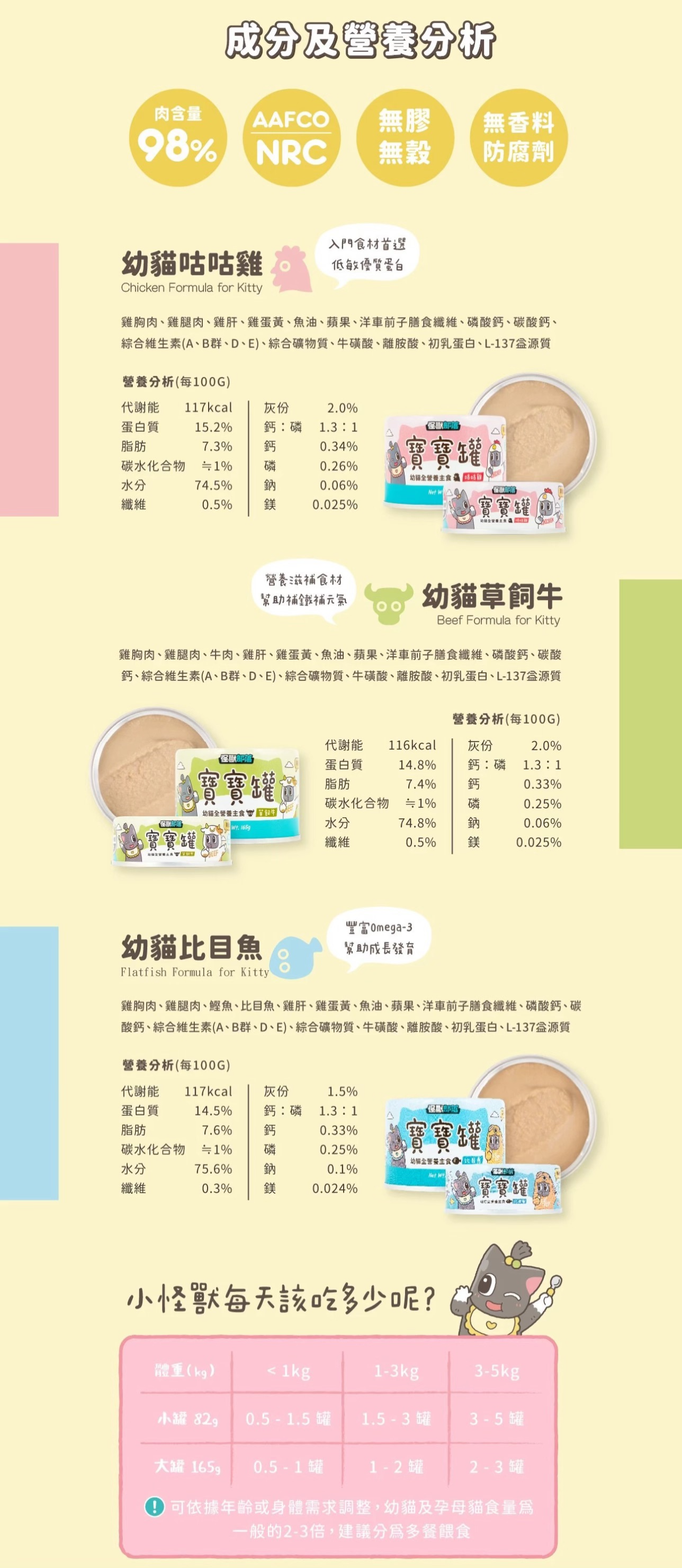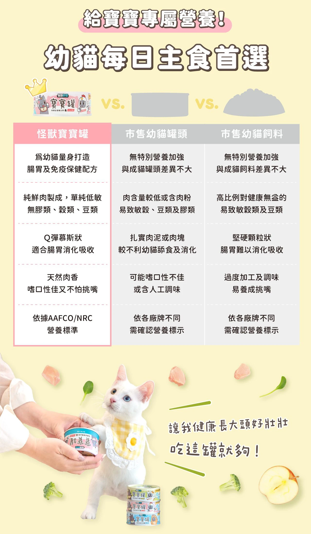 .完整營養均衡,依據 AAFCO 幼貓主食標準,適合作為每日主餐!