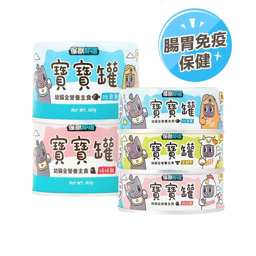 怪獸部落幼貓罐頭,低敏、好消化配方,並額外添加益生元,有助於腸道菌群平衡,幫助幼貓吸收營養、維持健康消化系統。