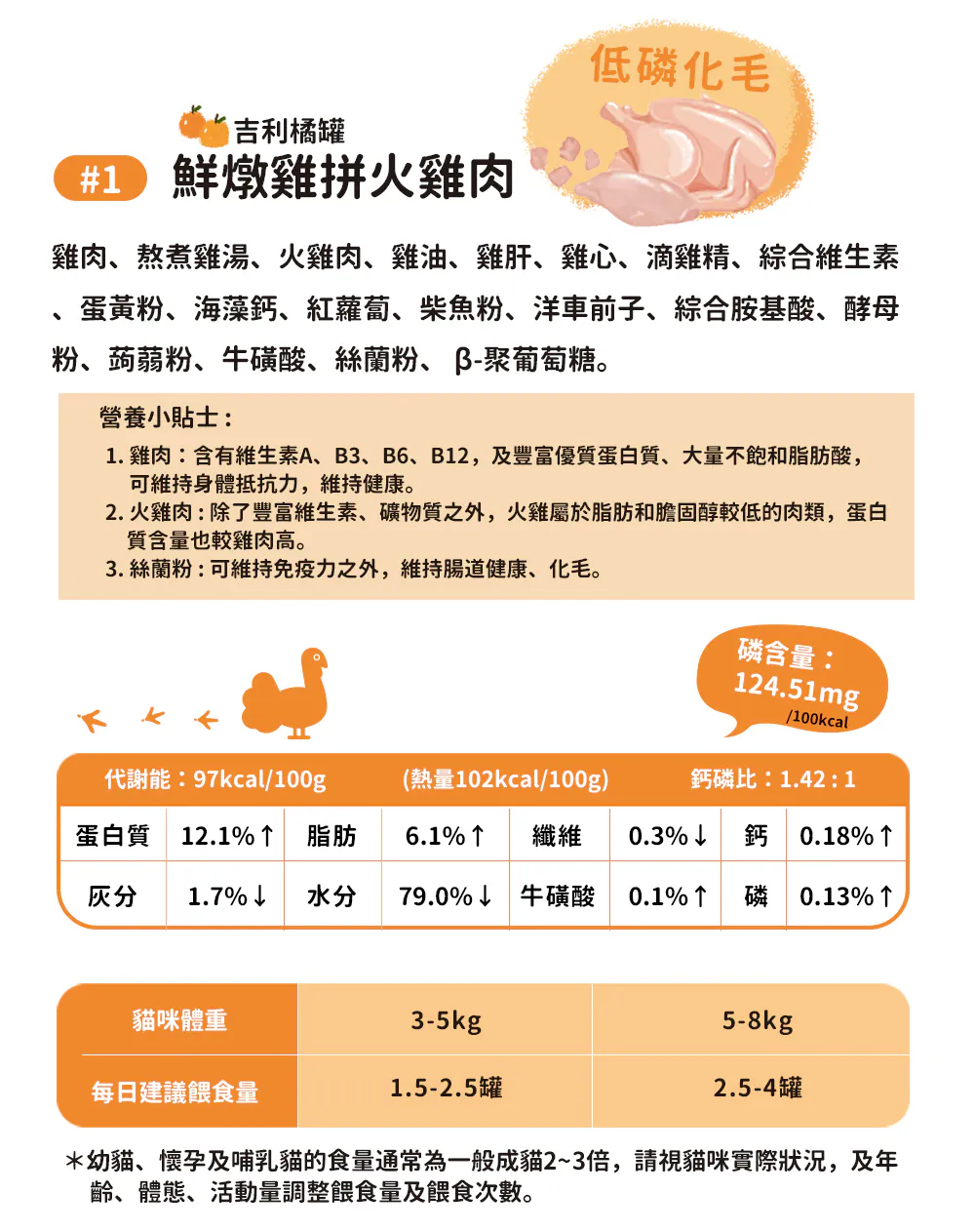 • 橘罐|低磷化毛  鮮燉雞拼火雞肉 橘罐|低磷化毛 鮮燉雞拼火雞肉