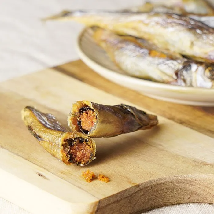來自北歐挪威純淨深海,含有粒粒分明的飽滿魚卵,營養價值極高,有豐富的鈣質、DHA及維生素 E。滿滿彈牙潤口的營養魚卵,讓毛孩享用得愛不釋口,瞇起眼睛、卡滋卡滋 哺滋哺滋 、心滿意足地享受爆蛋小魚唷!
