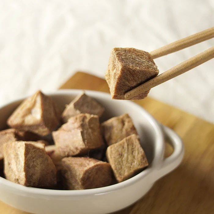 ※ 骰子牛選用天然整塊原肉切塊製成,因此可能包含原肉本身的筋膜,建議毛拔麻剝/剪成小塊再餵食毛孩喔!