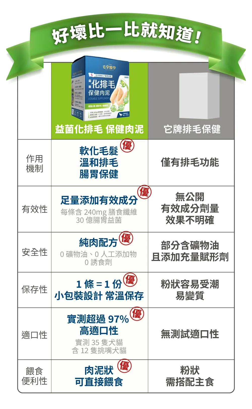 「益菌化排毛 保健肉泥」和化毛膏差在哪裡?