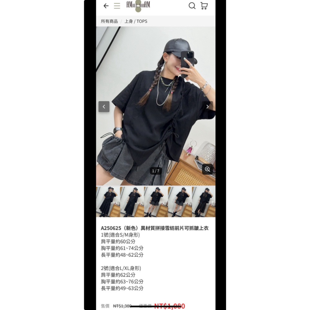 A250625異材質拼接雪紡前片可抓皺上衣 黑色1號$800