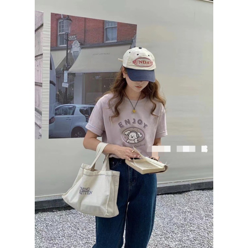 (A336)正韓 戴耳機狗狗圖案短袖上衣-4色