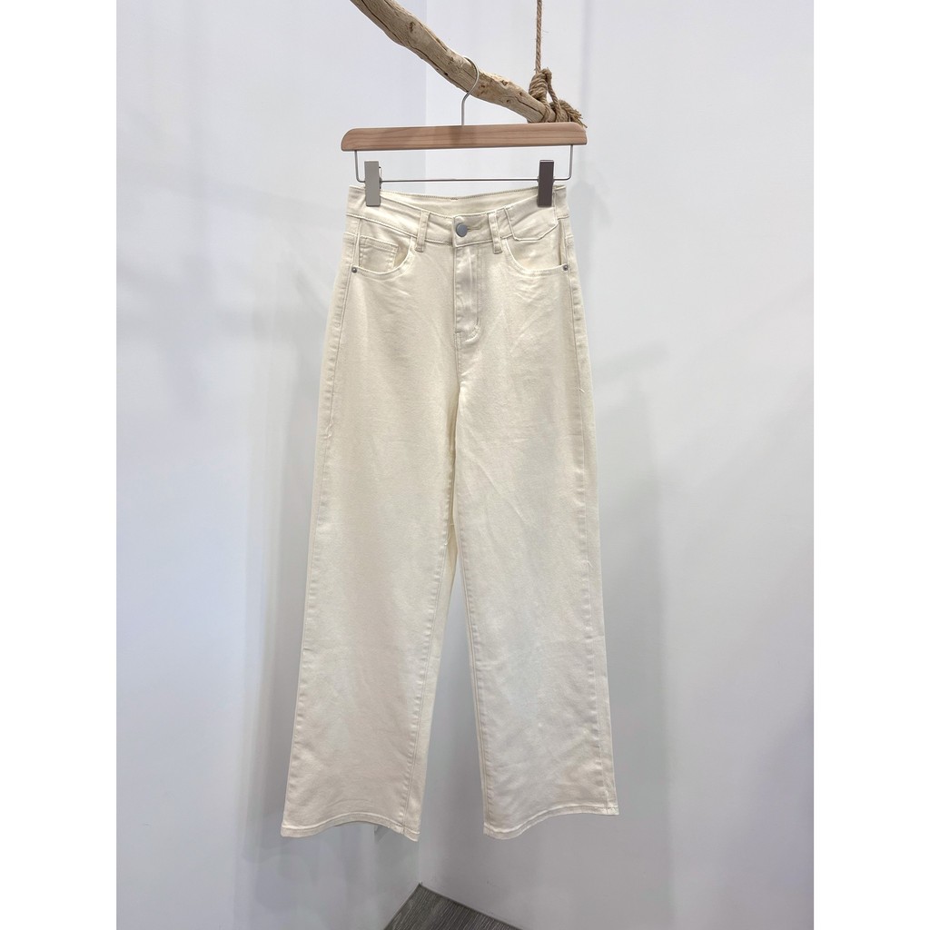 (D203)米白色彈性牛仔寬褲S-XL【現貨L】