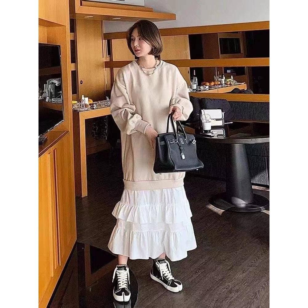 (C69)拼接蛋糕裙薄長袖洋裝-2色 連身裙 連衣裙 連身裙長裙 秋冬