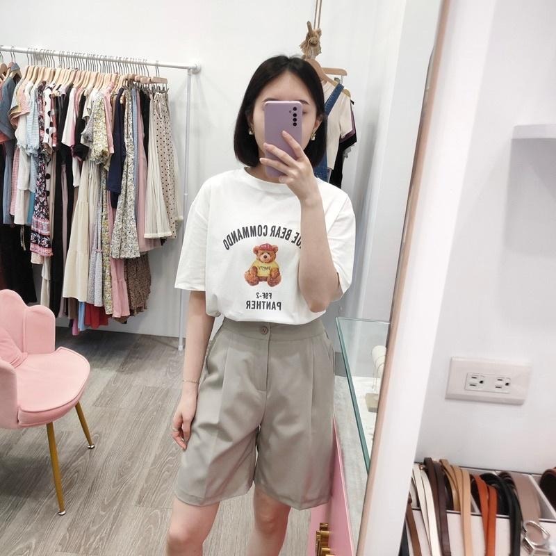 (A189)泰迪熊圖案短袖上衣-3色