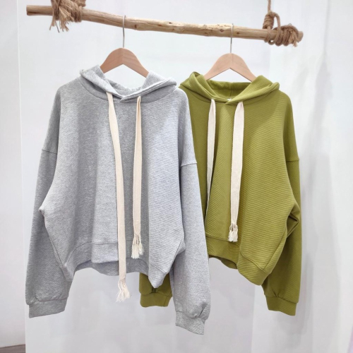 衣服還做有一點立體紋路感的斜紋設計 很特別的一款帽t