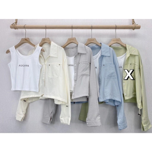 (A389)字母背心+短版下抽繩襯衫-3色 兩件式套裝 襯衫外套 夏天外套