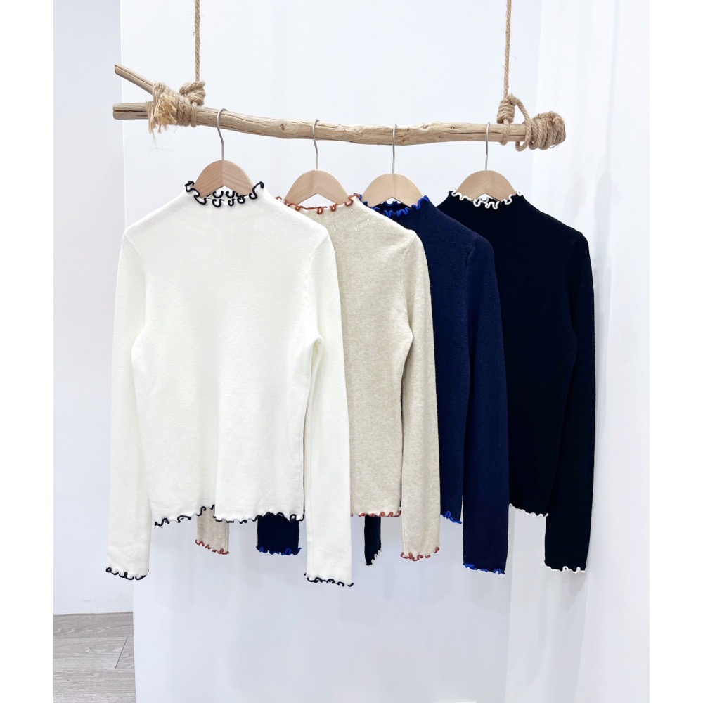 領口+袖口+下擺都有木耳邊造型