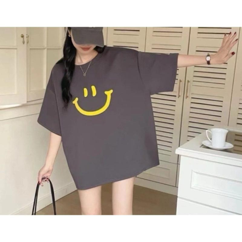 笑臉太空棉刺繡t恤上衣 灰 紫 二手近新