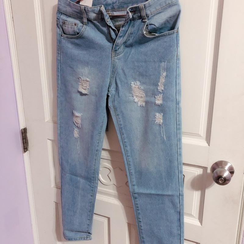 刷破風牛仔褲 淺藍色 全新 M
