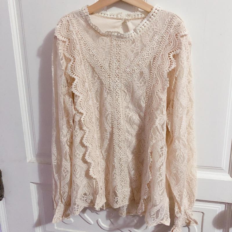 超美蕾絲緹花上衣 杏 全新
