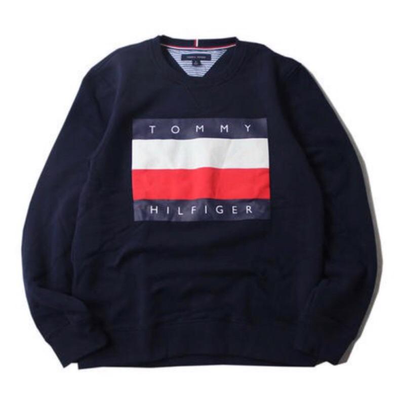 TOMMY Hilfiger 國旗大學t 刷毛 t恤 衛衣 深藍 男S 少穿