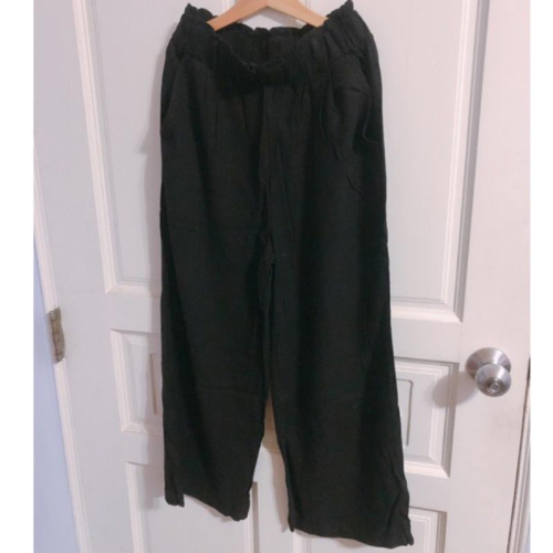 彈性休閒棉麻寬褲 黑色 可穿到L