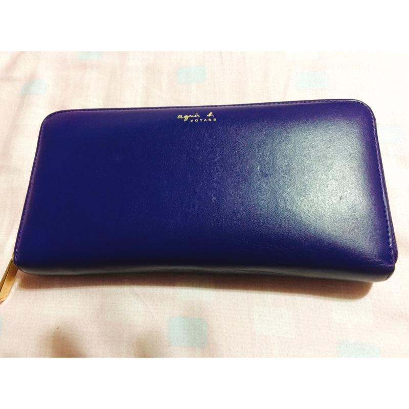 Agnes.b 小b 牛皮 藍紫色 皮夾 ㄇ字型拉鍊 長夾 二手 agnesb