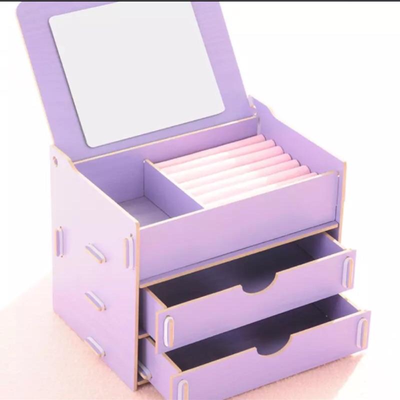 木質帶鏡首飾盒 珠寶盒 飾品 收納 紫色 二手