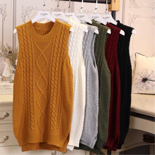 已售出 麻花圓領針織背心長版毛衣 剩綠