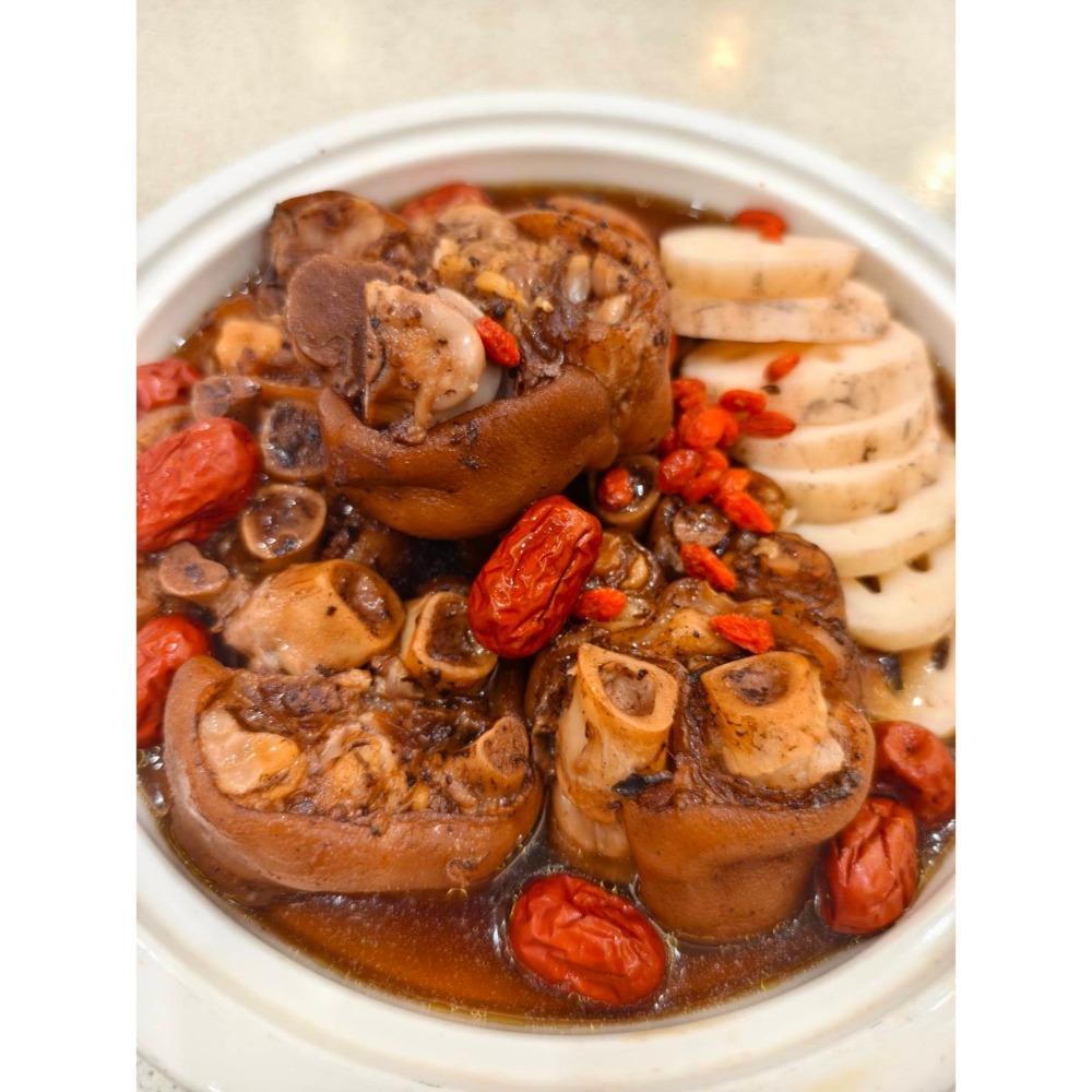 嚴選蓮藕與膠質豐富的豬腳,搭配藥香濃郁的何首烏慢火燉煮,湯頭醇厚回