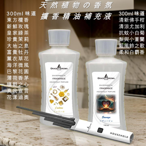 GRACE AROMA 格瑞斯 藤枝擴香補充液 300ml 贈藤枝×4