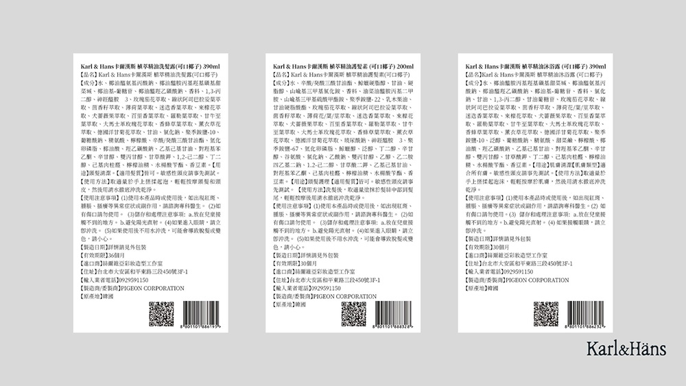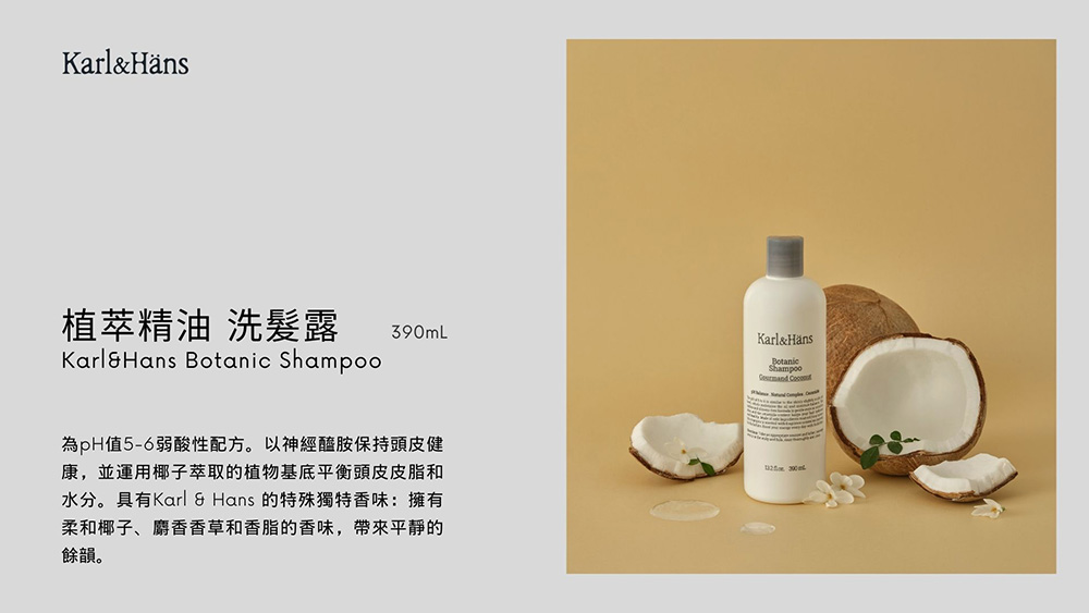 品名:Karl & Hans植萃精油護髮素(可口椰子)