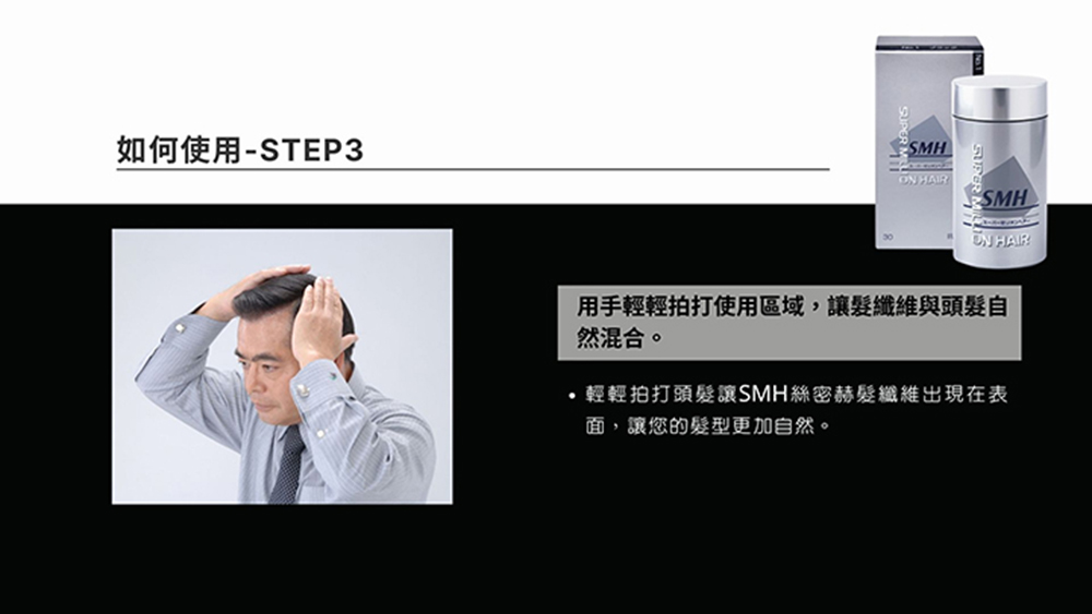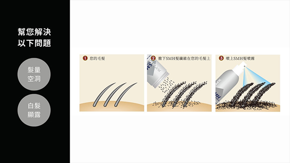 【用途】 讓使用SMH絲密赫 髮纖維後的髮型免受雨水、風雨和汗水的破壞,具有強力定型效果。