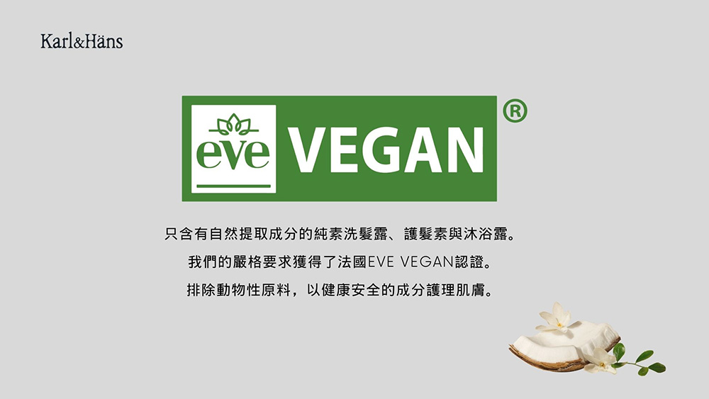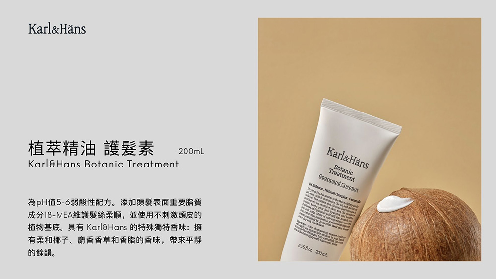 品名: Karl & Hans卡爾漢斯 植萃精油護髮素(可口椰子)