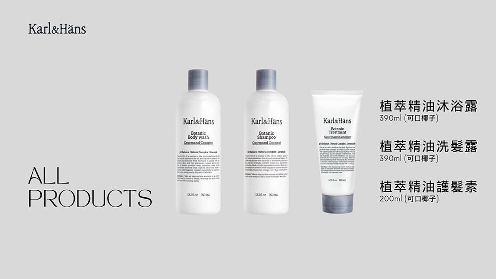 品名:Karl & Hans卡爾漢斯 植萃精油沐浴露 (可口椰子)