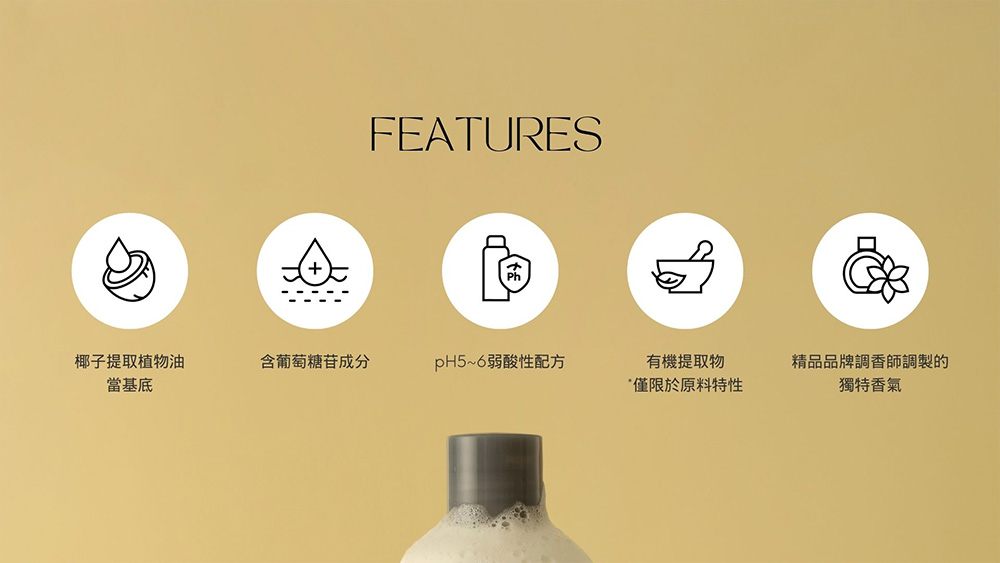 為pH值5-6弱酸性配方。添加頭髮表面重要脂質成分18-MEA維護髮絲柔順,並使用不刺激頭皮的植物基底。具有 Karl&Hans 的特殊獨特香味:擁有柔和椰子、麝香香草和香脂的香味,帶來平靜的餘韻。