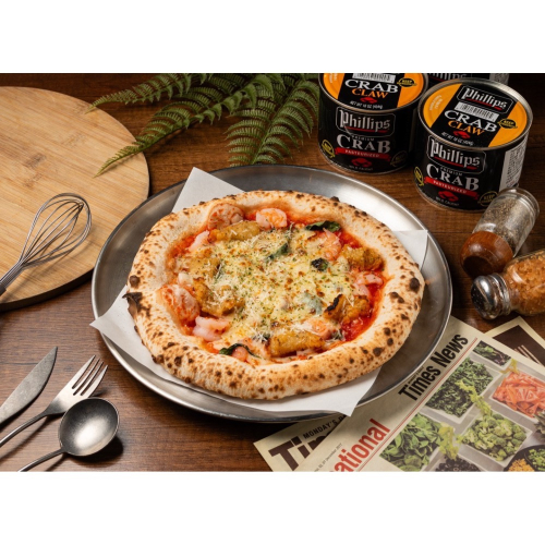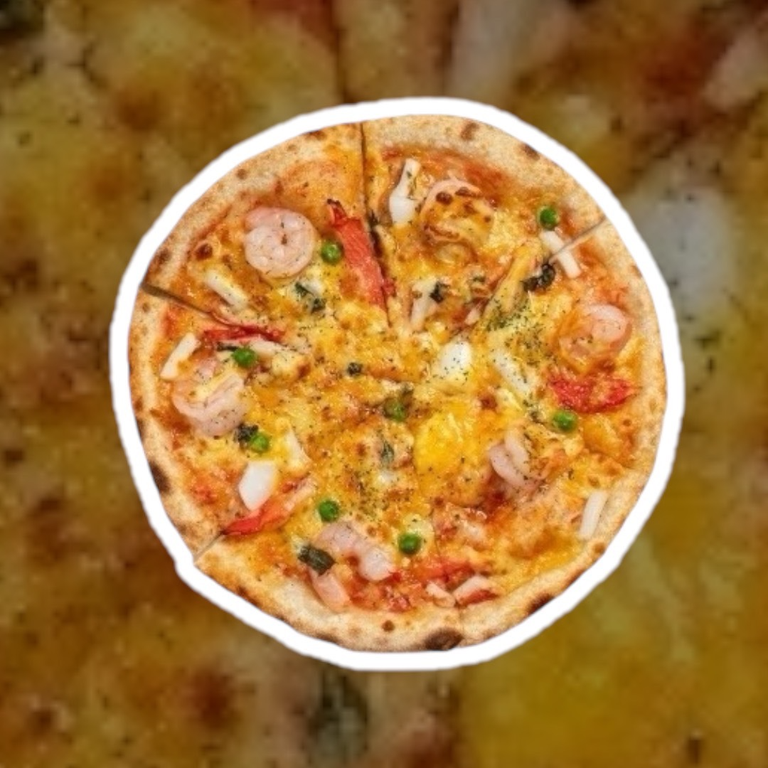 海鮮總匯披薩結合新鮮的中卷、蝦仁、巴沙魚與豐富的芝士,搭配以拿坡里的披薩餅底,口感Q彈。每一口都散發著海洋的鮮味,讓人彷彿置身於海邊,令人回味無窮,是喜愛海鮮者的理想選擇。