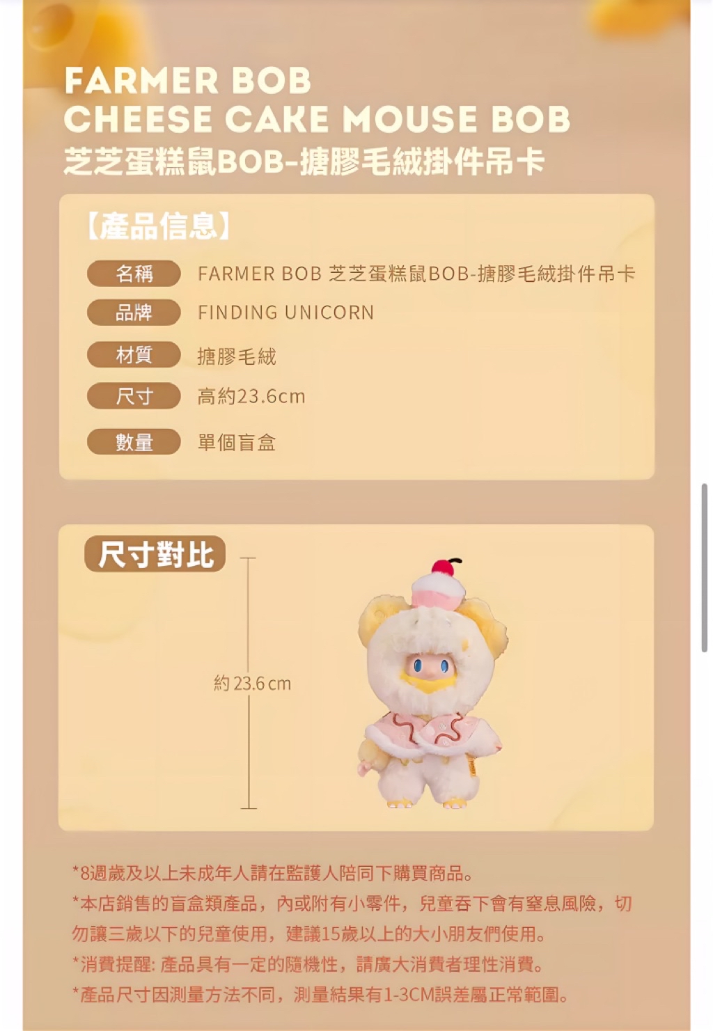 《現貨》FINDING UNICORN 尋找獨角獸 FARMER BOB芝芝蛋糕鼠 搪膠毛絨掛件吊卡