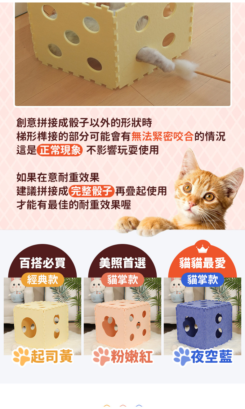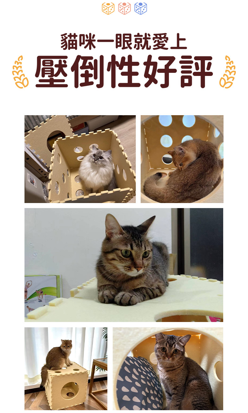 組裝式可水洗毛氈骰子貓抓屋3色任選 w