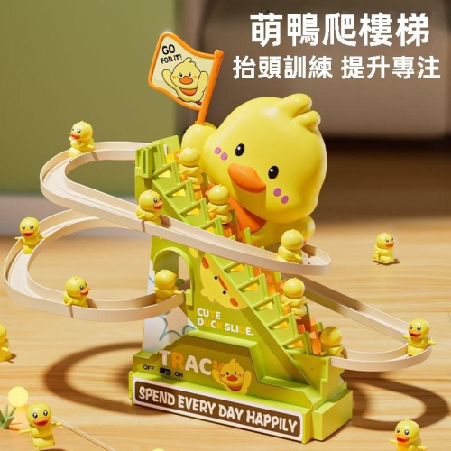 【💖愛選購】搖旂鴨自動爬上樓梯電動軌道車兒童益智加油鴨小黃鴨子滑滑梯玩具