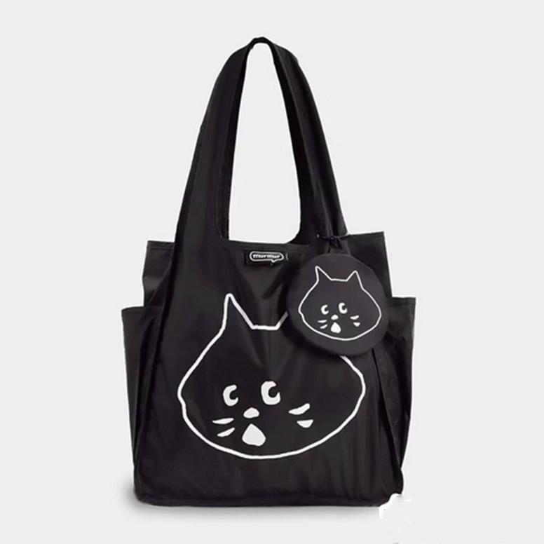 【💖愛選購】ne net驚訝貓卡通可愛折疊大容量購物袋單肩包零錢包二件套萌 驚訝貓 購物袋 單肩包