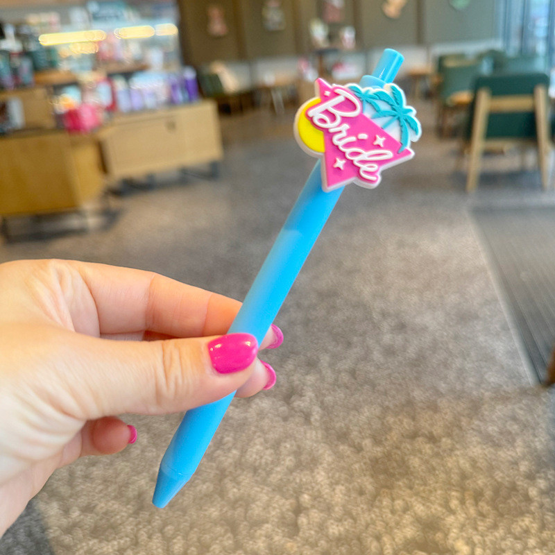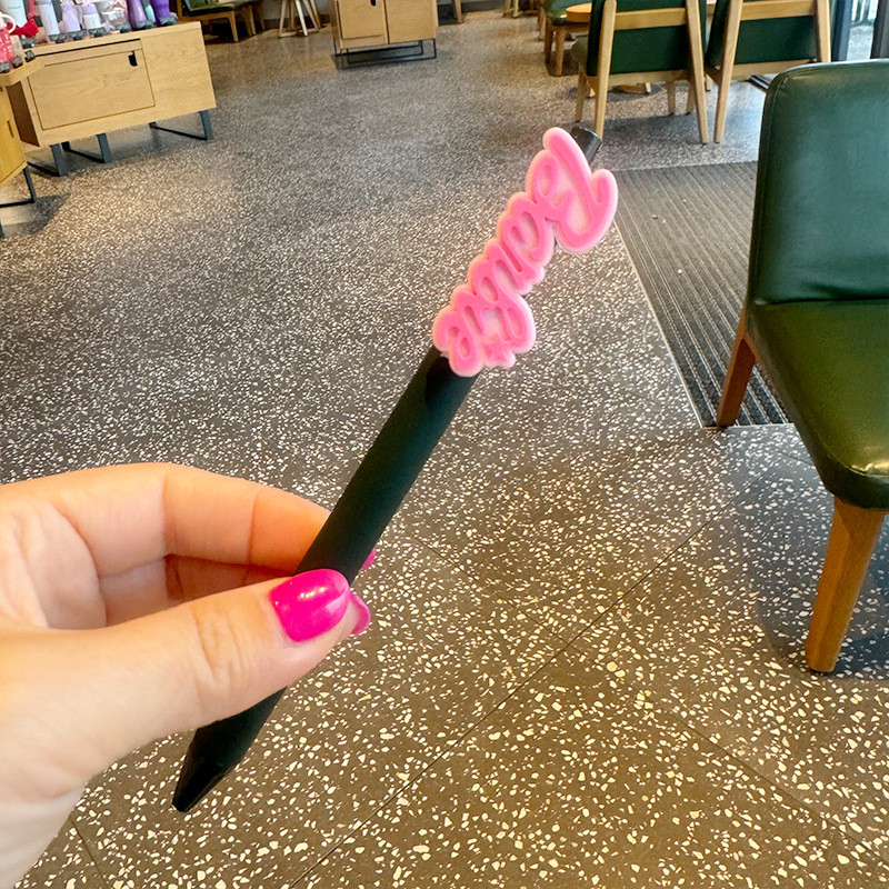 韓係滑闆鞋磚石字母卡通亞剋力貼片中性筆粉色女生高顔值按動式 w