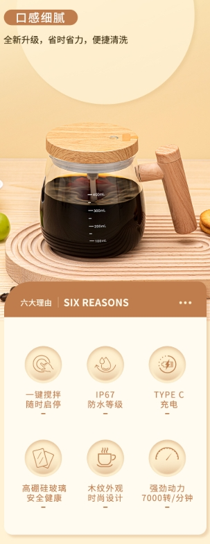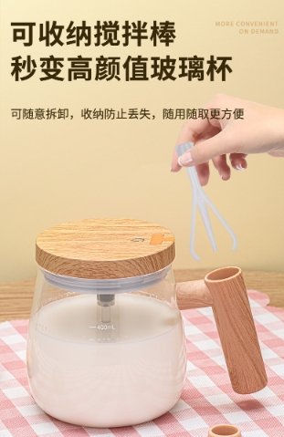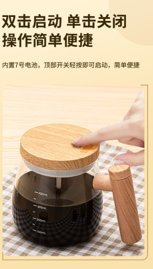全自動攪拌杯抖音外貿爆款高顏值電動咖啡杯馬克杯楓木色攪拌杯 w