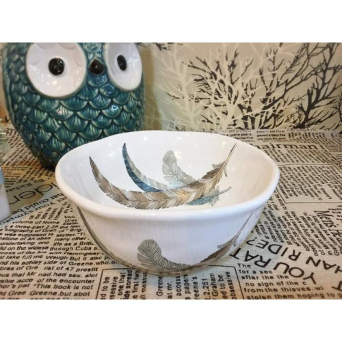 直徑14.5cm,高6.6cm 在活動專區中任選3樣商品即享有85折優惠 專區中的價格都已設定為折扣價 不符合規則的訂單,我們保有取消訂單的權利 #貓頭鷹 #羽毛 #手捏陶 #碗 #鄉村風