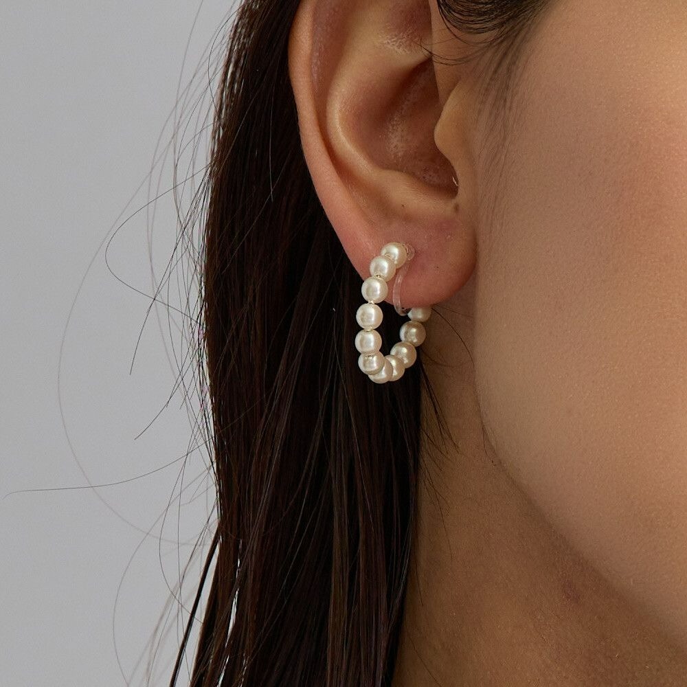 『VITA』【日製飾品|人造珍珠C字夾式耳環】