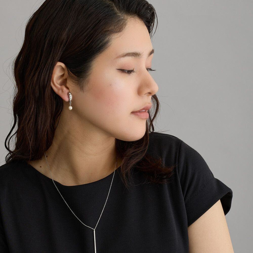 『VITA』【日製飾品|垂墜珍珠鑽飾夾式耳環】