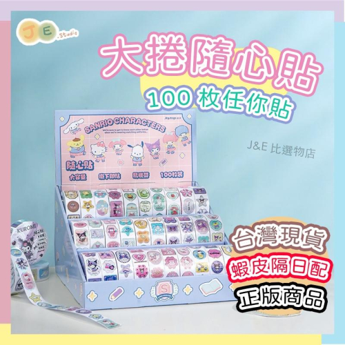 【台灣現貨🎁J&E比選物店】正版 三麗鷗 100枚 雷射貼 隨手貼 封口貼 手帳貼 閃閃貼 貼紙 膠帶型貼紙
