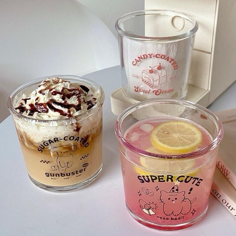 【台灣現貨🎁J&E比選物店】 卡通 甜品 玻璃杯 水杯 咖啡杯 杯子貓咪 小狗 甜點