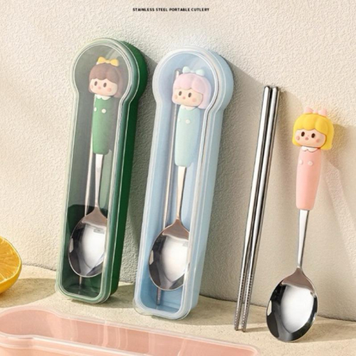 【台灣現貨🎁J&E比選物店】 可愛女孩 餐具組 個人餐具 環保餐具 餐具