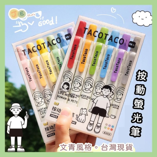 【台灣現貨🎁J&E比選物店】TacoTaco 按動式 螢光筆 文青風格 按動螢光筆 筆 文具 6入一組