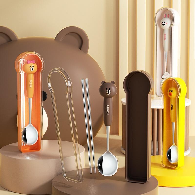 【台灣現貨🎁J&E比選物店】正版 LINE FRIENDS 餐具盒 304不鏽鋼 熊大 兔兔 莎莉 熊美