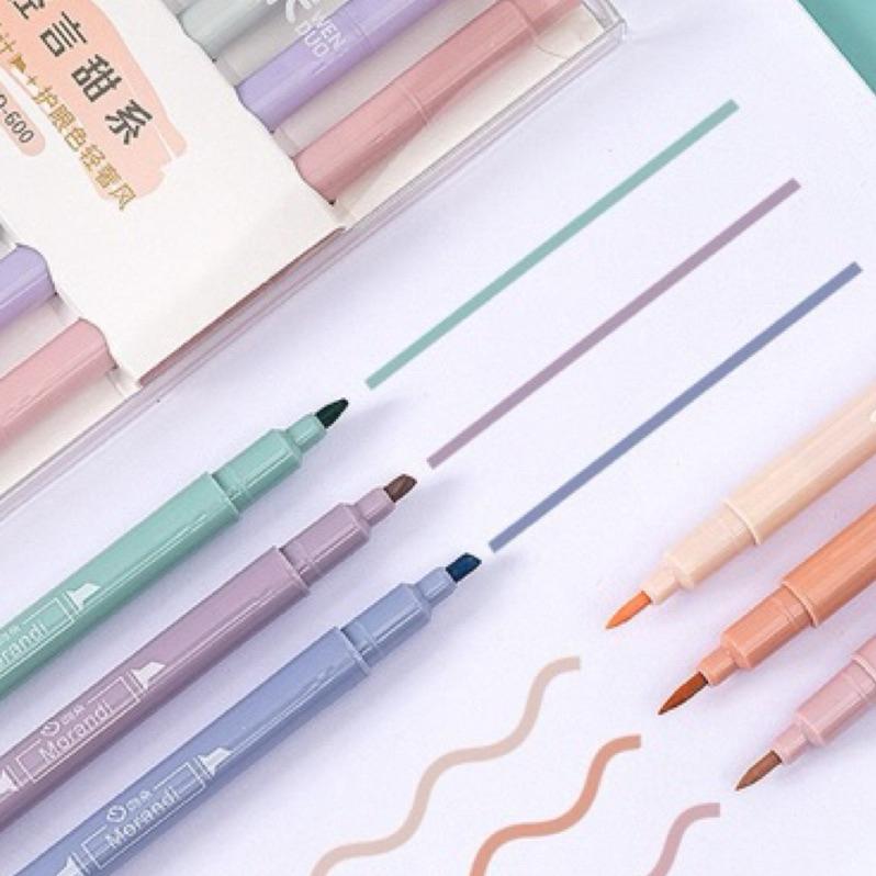 【台灣現貨🎁J&E比選物店】 雙頭 螢光筆 6入一組 輕奢風 超軟頭 護眼色 記號筆 筆 文具