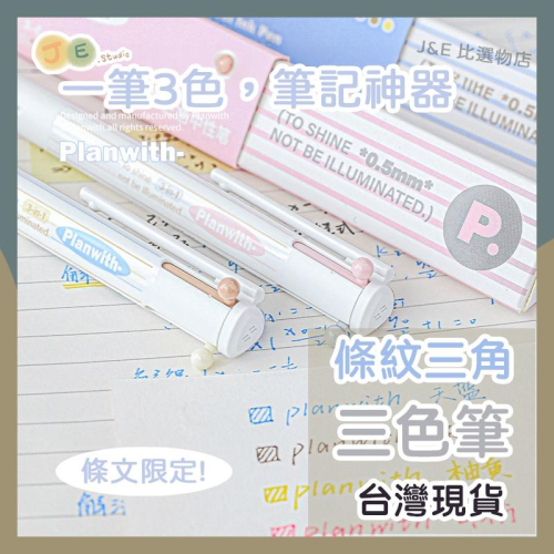 【台灣現貨🎁J&E比選物店】三色筆 條紋限定 原子筆 按動 中性筆 筆 文具 藍 黃 粉 棕 灰