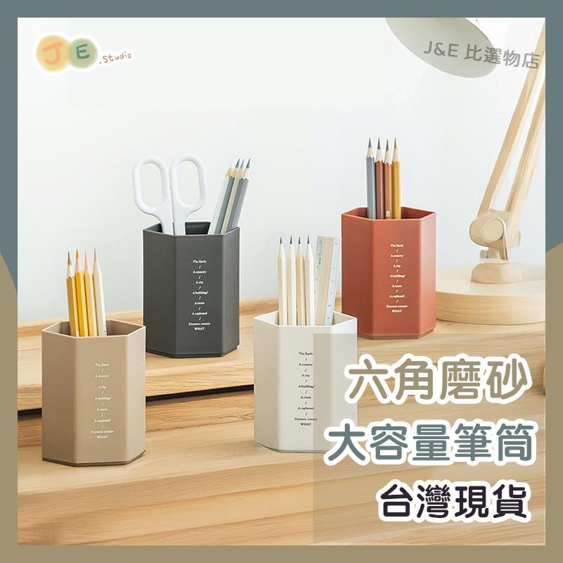 【台灣現貨🎁J&E比選物店】 六角 磨砂 筆筒 大容量 收納 無印風 簡約 筆筒 文具 辦公室文具 多色選擇