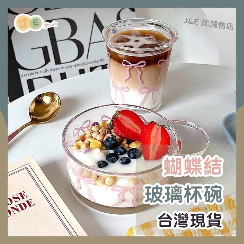 【台灣現貨🎁J&E比選物店】 蝴蝶結 玻璃杯 玻璃碗 套裝 杯子 水杯 甜點杯 甜點碗 單耳碗 咖啡杯 翻口杯