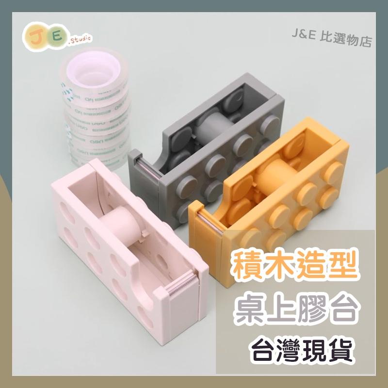 【台灣現貨🎁J&E比選物店】 積木造型 膠台 膠帶切割器 膠帶座 膠帶分割 收納盒 切割 童趣 膠帶 文具