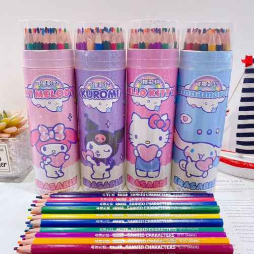 【台灣現貨🎁J&E比選物店】正版 三麗鷗 可擦 HB 色鉛筆 12色 24色 36色 彩色鉛筆 桶裝色鉛筆 畫筆 繪畫